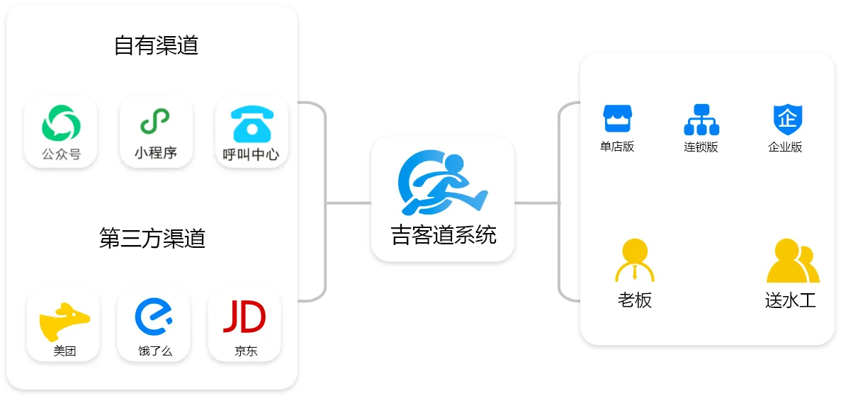 自有渠道(私域流量):水站公众号、小程序、呼叫中心等;